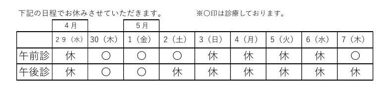 | 子宮頸がんワクチン | シルガード9の接種も行っています。ご希望の方は、お電話にて予約してください。 |